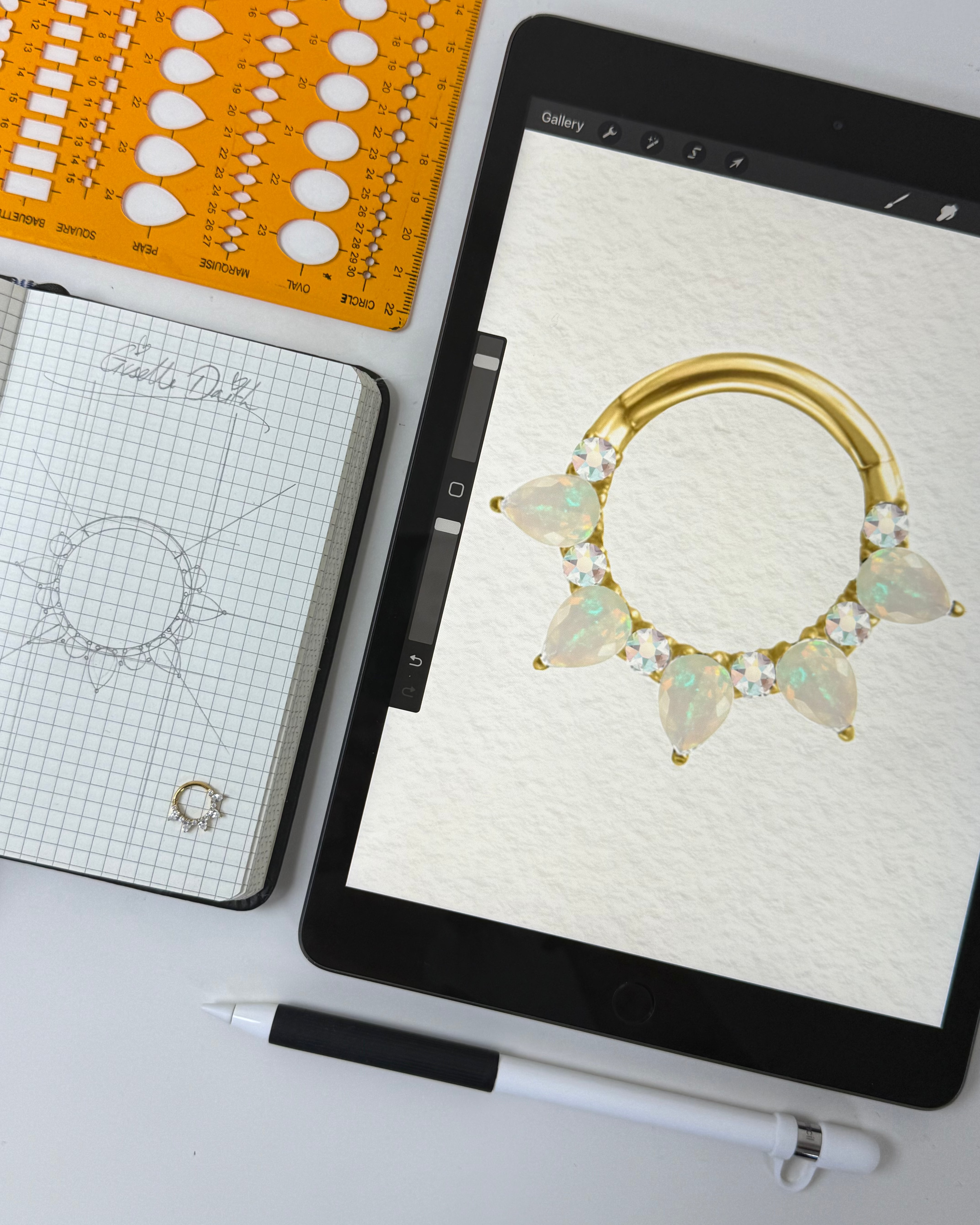 Piercings have been part of my personal identity ever since I begged my mum to have my lobes pierced at 8 years old, I was obsessed from that moment on. As I got older, I struggled to find pretty earrings that didn't turn my skin green or irritate my sensitive ears, so I combined my love for jewellery and natural creativity to design wearable art.