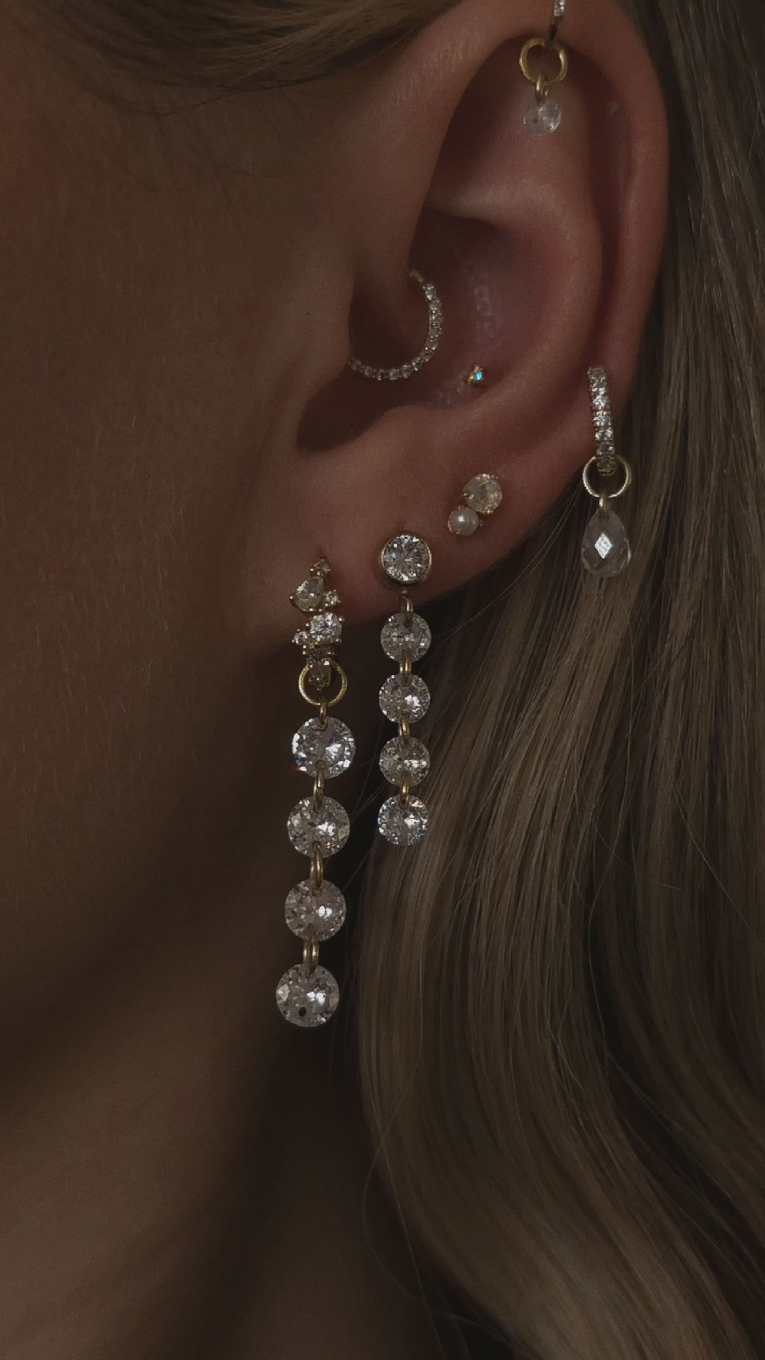 Discover your allure with the only earrings you need this sparkle season. Handmade to order in limited quantities, our Allure earrings are adorned with cascading crystals suspended from a timeless pavé huggie. Intentionally designed for maximum sparkle to light up any room.