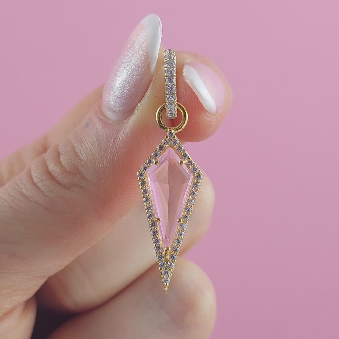 Adorned with shimmering huggies, complimenting the halo of crystals surrounding a translucent baby-pink stone. They're the definition of soft, feminine energy.