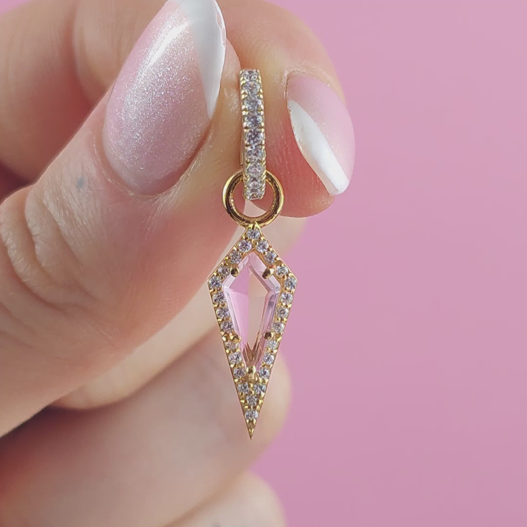 Adorned with shimmering huggies, complimenting the halo of crystals surrounding a translucent baby-pink stone. They're the definition of soft, feminine energy.