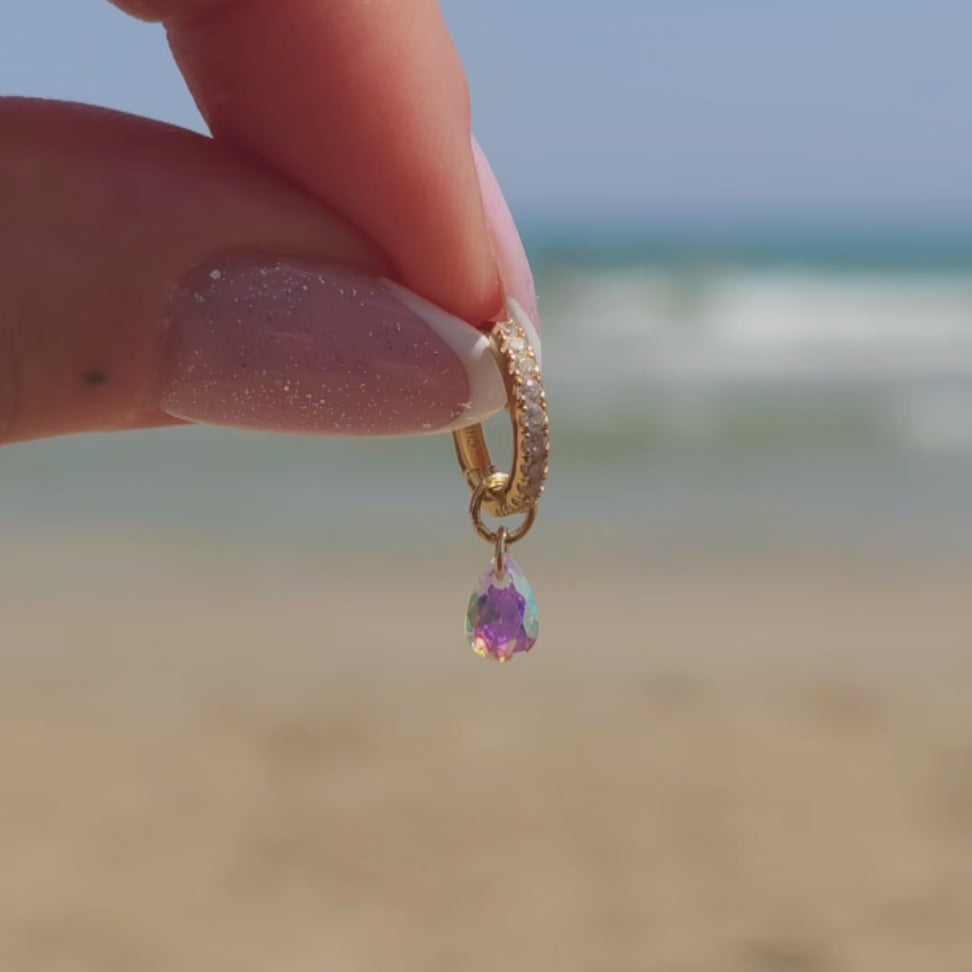 Gleam and glimmer all day and night with our Teardrop Charm with an ethereal mystic finish. A fairytale inspired crystal that dazzles like ribbons of light, an essential for your statement charm collection. Designed to adorn your lobe, helix, rook, vertical helix or tragus.