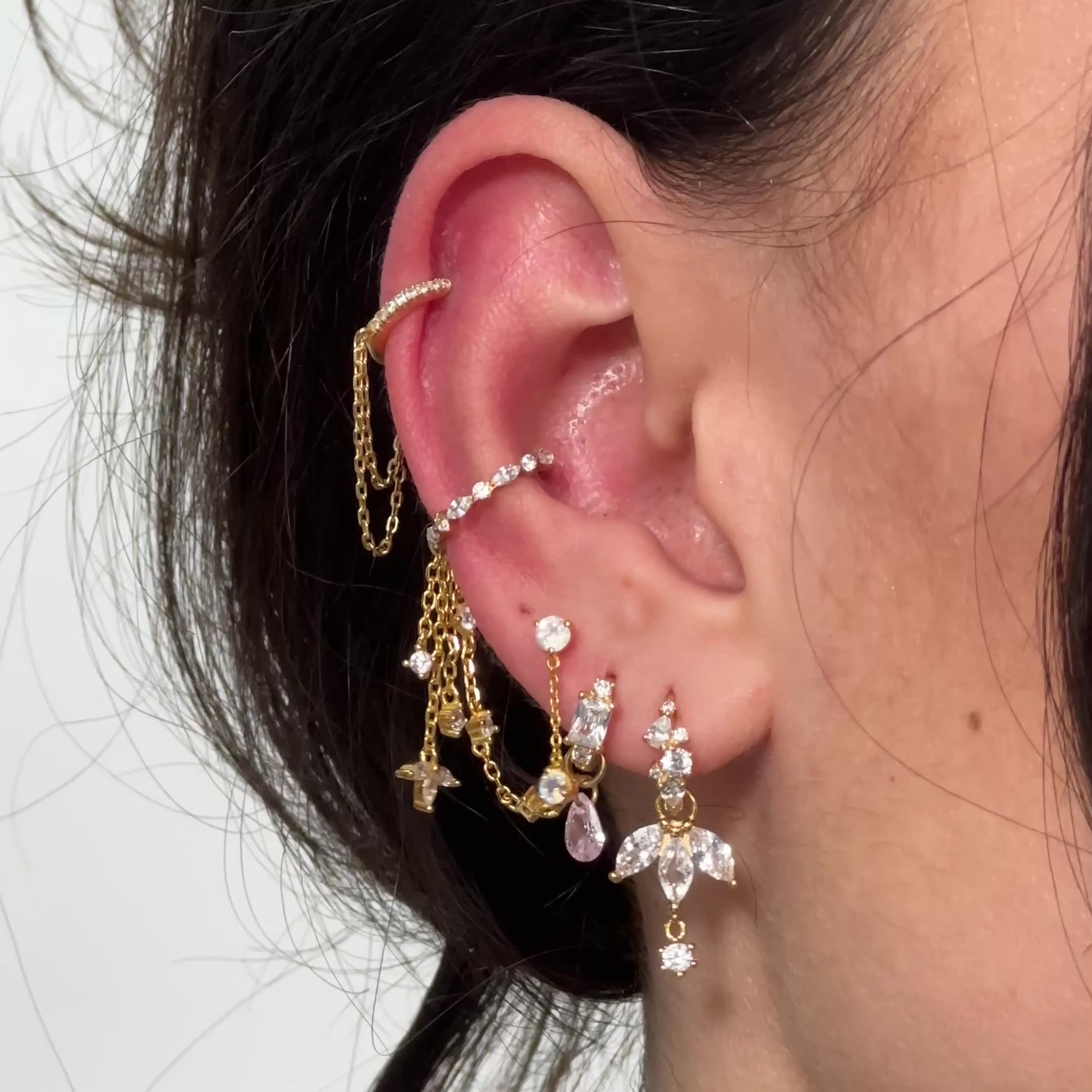 A pop of pink to make your ear stack shine, of course. Meet our playful new Teardrop Charm in Rose Quartz colour, a delicate and feminine adornment which can be added to your favourite huggie or cartilage hoop for an instantly elevated look.