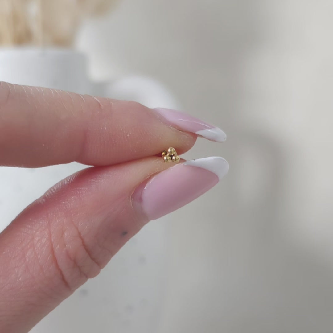 Tiny, delicate and adorable... say hello to the effortlessly-chic Trinity Cartilage Stud. Intentionally designed for smaller piercings such as a tragus, forward helix, conch or stacked lobe. Titanium is skin-friendly and durable, the colour will not chip, fade or tarnish making it suitable for long-term wear.