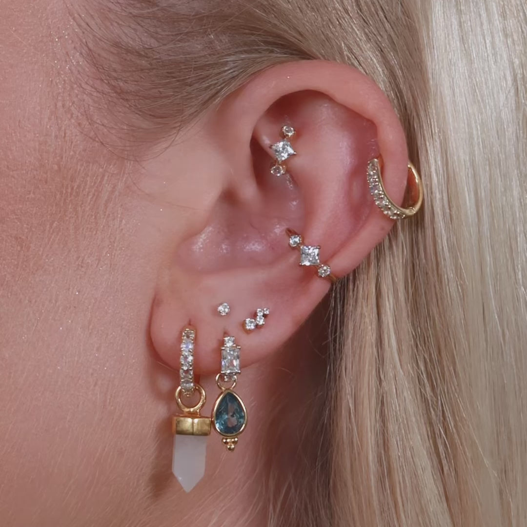 Our Vega cartilage hoop features a trio of sparkling crystals, set within hypoallergenic Titanium. The versatile 6mm inner diameter is perfect for a rook, tragus, upper lobe or mid-helix piercing.